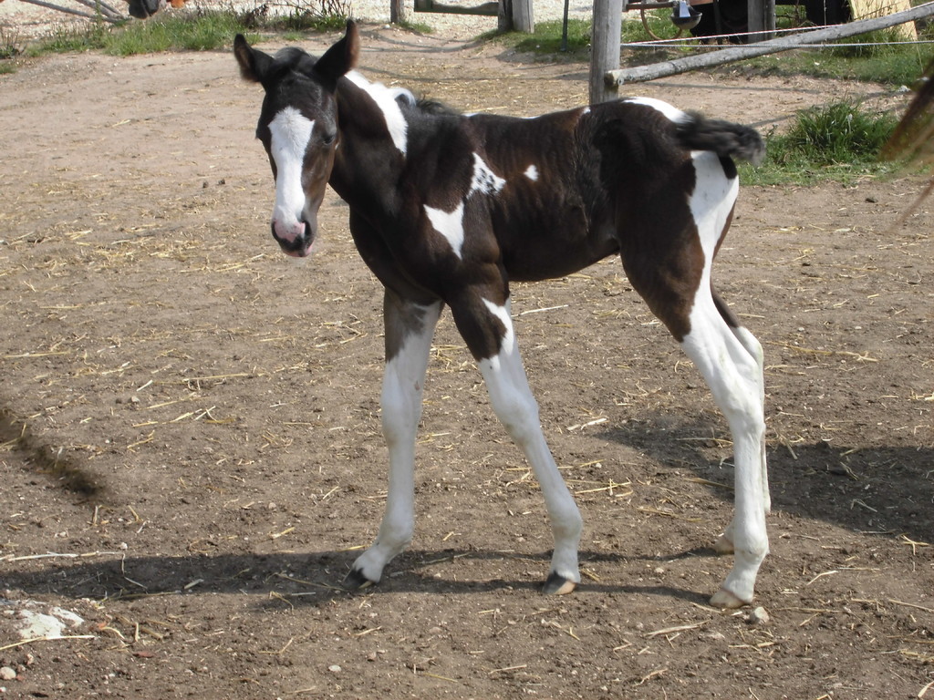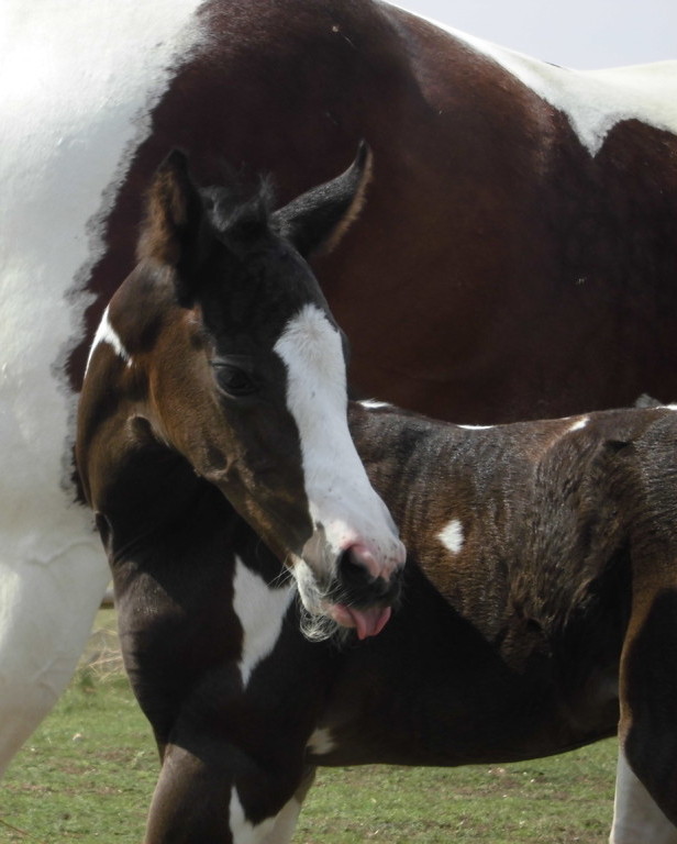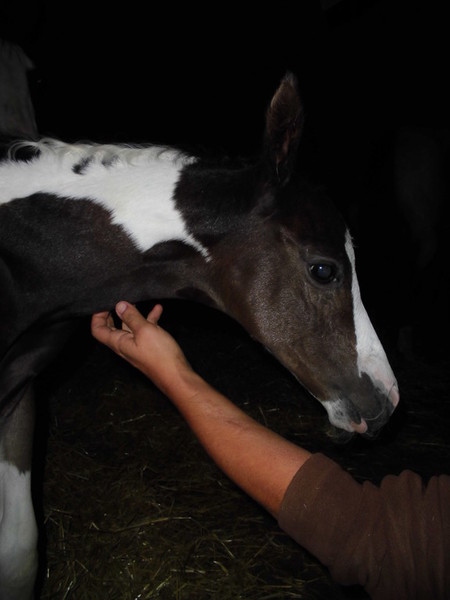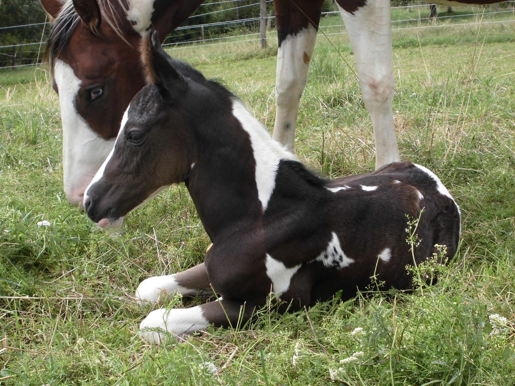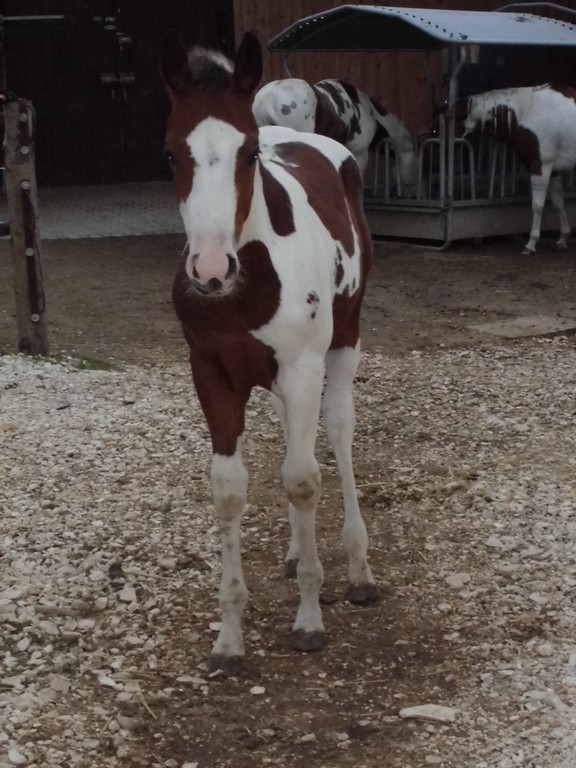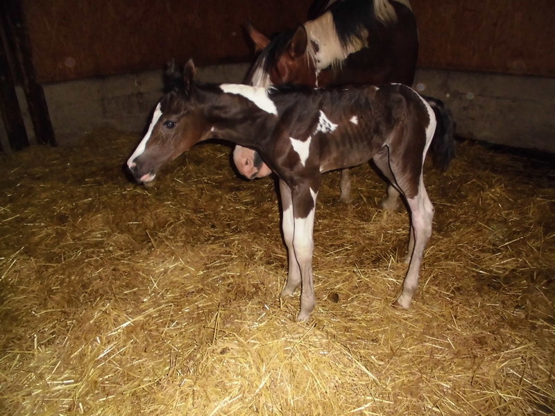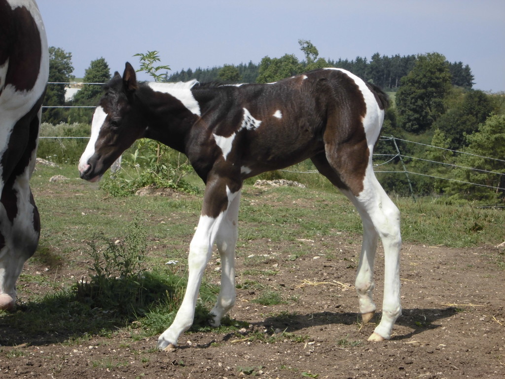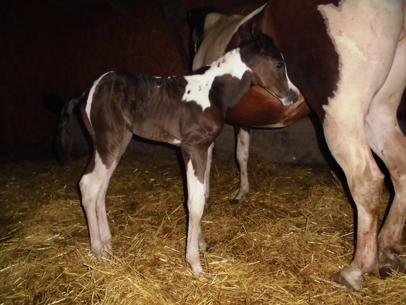 Am Abend des 23.04.2013 ist dieser hübsche bay-tobiano Hengst auf die Welt gekommen. Es war ein wunderschönes Erlebnis da wir von Anfang an dabei sein konnten. Die vielen kleinen Spots lassen darauf schließen dass er homozygot für Tobiano ist! Test läuft! - Und wir haben es jetzt schwarz auf weiß! Er ist homozygot! *freu