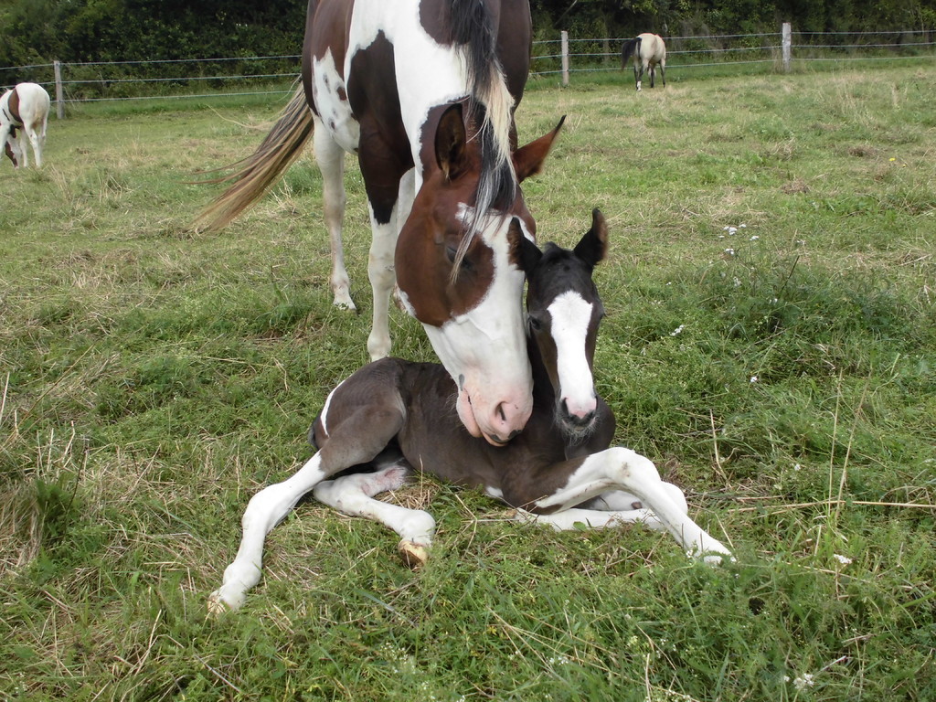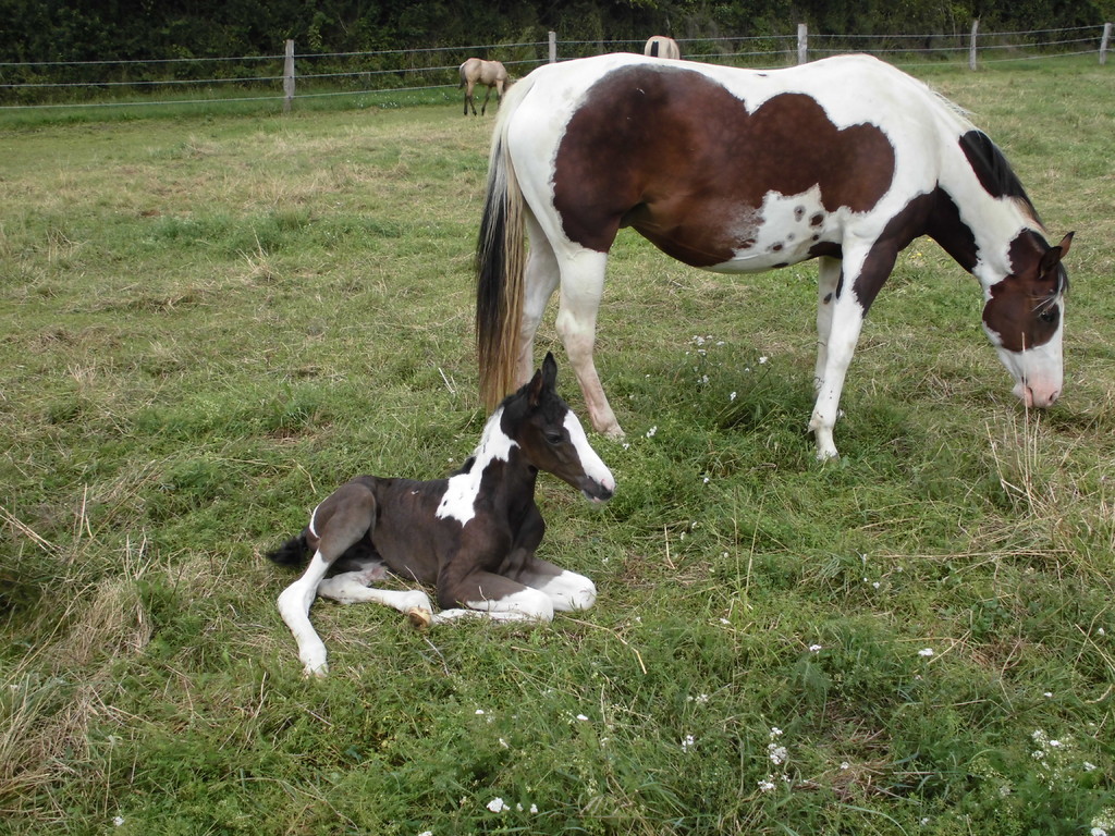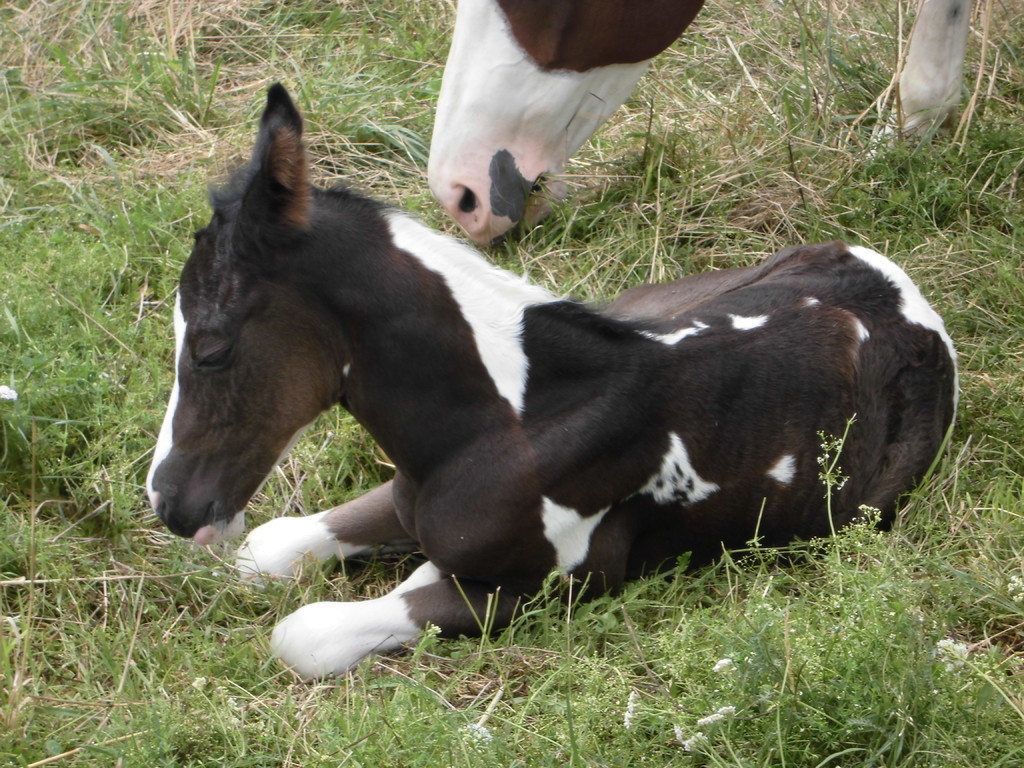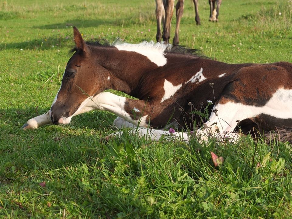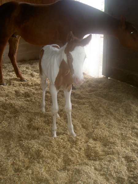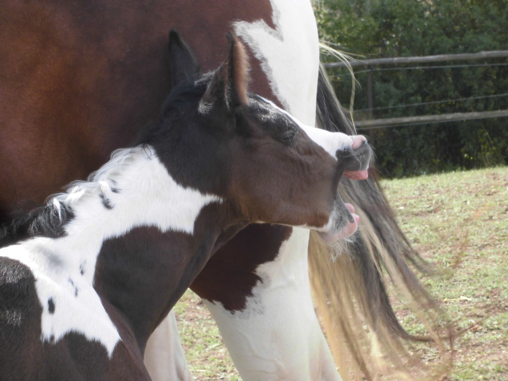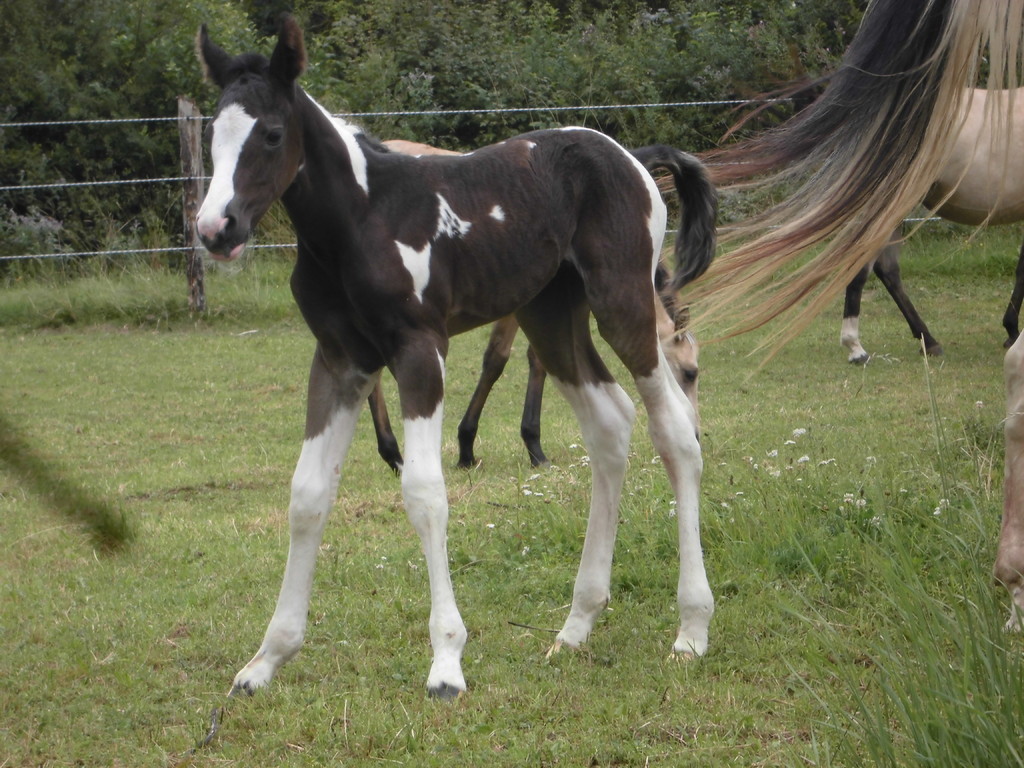 Am Abend des 23.04.2013 ist dieser hübsche bay-tobiano Hengst auf die Welt gekommen. Es war ein wunderschönes Erlebnis da wir von Anfang an dabei sein konnten. Die vielen kleinen Spots lassen darauf schließen dass er homozygot für Tobiano ist! Test läuft! - Und wir haben es jetzt schwarz auf weiß! Er ist homozygot! *freu